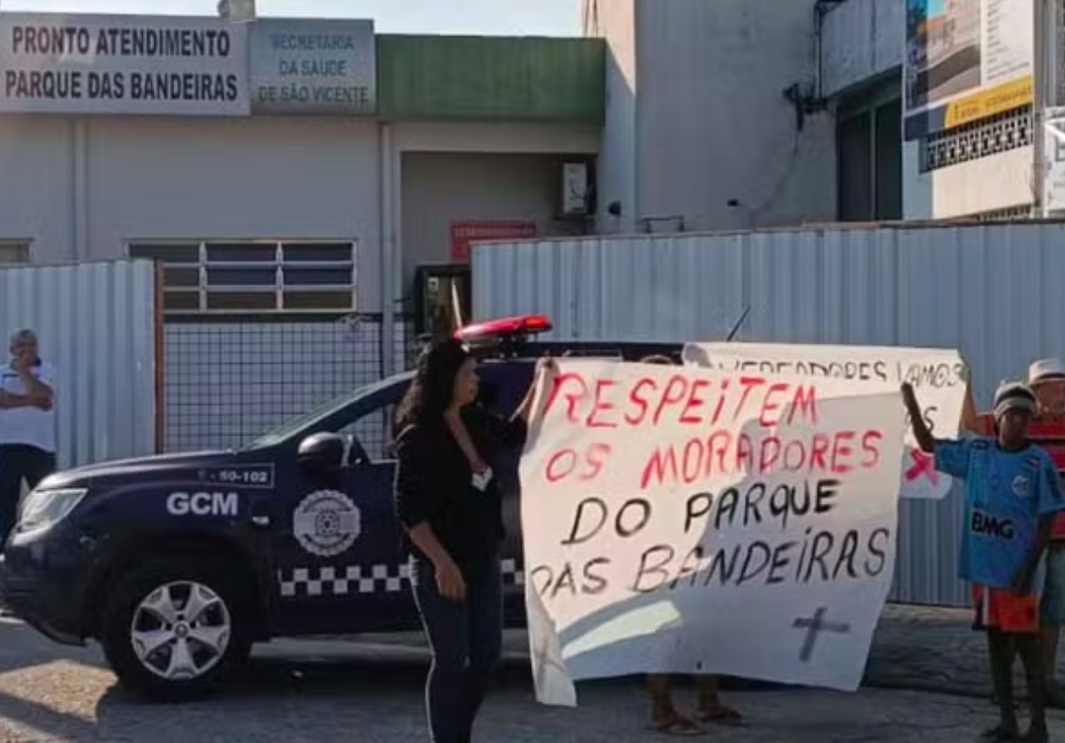 Os moradores de São Vicente, na Baixada Santista, protestam contra o fechamento do Pronto-Socorro (PS) Parque das Bandeiras, no bairro Rio Branco. A população solicita que a reforma do equipamento seja feita, de forma parcial sem interromper os atendimentos médicos.