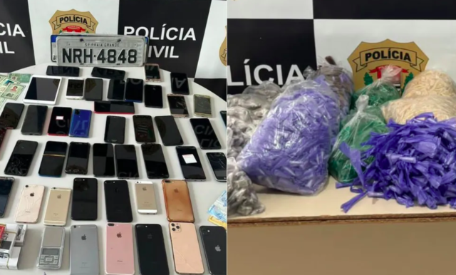 Os policiais também apreenderam 78 celulares e mais de 13 kg de drogas, como porções de maconha, cocaína, crack e ecstasy. As equipes ainda devolveram aos donos três carros, que tinham sido furtados e roubados.
