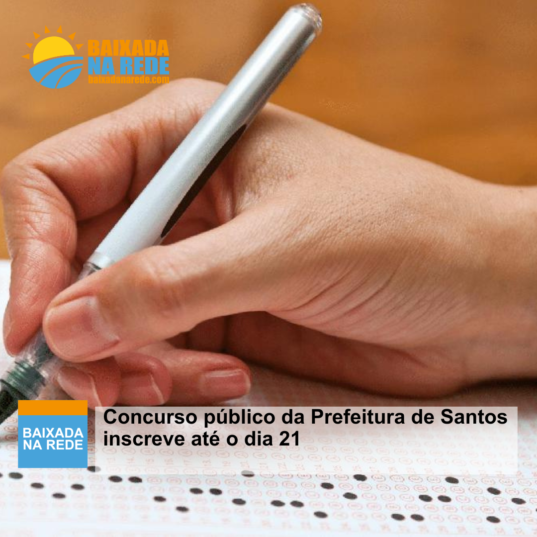 A prazo para as inscrições dos dois concursos públicos para o preenchimento de seis vagas na Prefeitura de Santos está acabando. Elas podem ser feitas até o dia 21 de março, às 17h, no endereço www.institutomais.org.br. As provas serão para os cargos de auditor municipal de controle interno (duas vagas), técnico de informática, analista de negócios, analista de sistemas e engenheiro de telecomunicações (uma vaga cada).