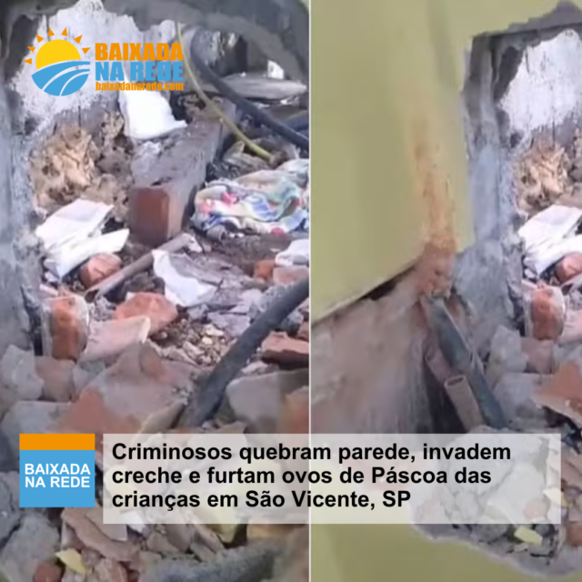 Criminosos abriram um buraco na parede e invadiram uma creche municipal no bairro Cidade Náutica, em São Vicente, na Baixada Santista, e furtaram ovos de Páscoa destinados às crianças que frequentam a unidade. Ninguém foi preso.