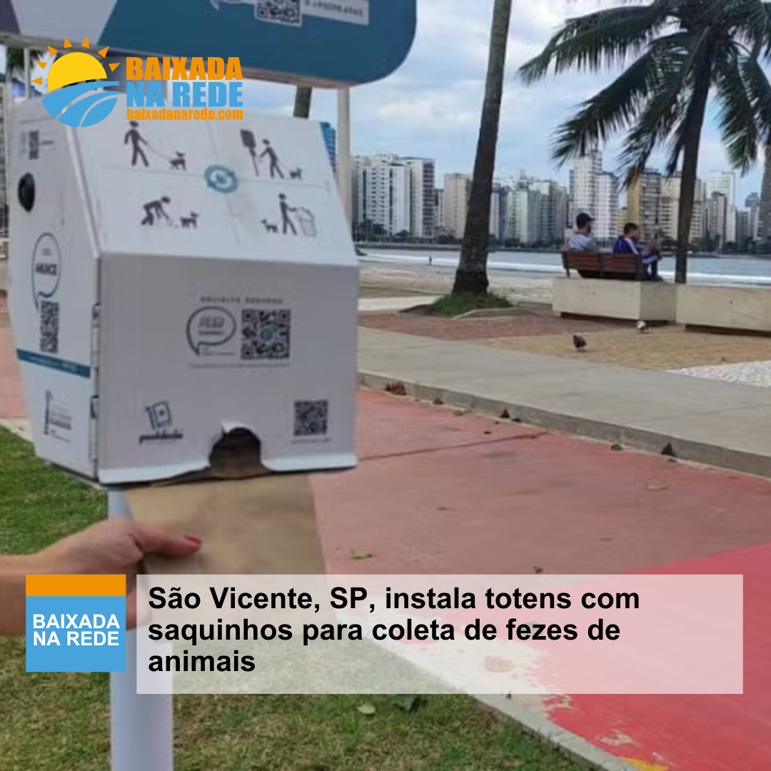 A Prefeitura de São Vicente, na Baixada Santista, instalou 52 totens com dispensers de saquinhos para coleta de fezes de animais. Os equipamentos estão espalhados em diversos pontos da cidade e a fiscalização do uso será feita pela Secretaria de Bem-Estar Animal (Sebem).