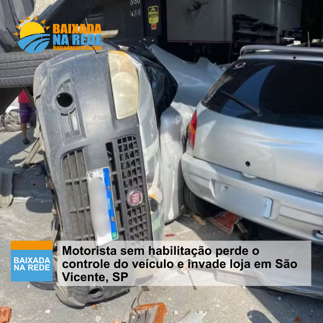 Um motorista, de 22 anos, sem habilitação perdeu o controle da direção, derrapou e voou contra uma loja de película veicular, onde também atingiu dois automóveis. O acidente aconteceu em São Vicente, na Baixada Santista, e não deixou feridos.