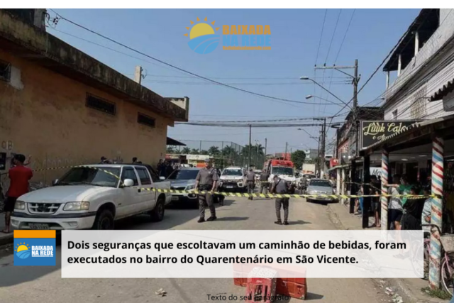 Dois seguranças que faziam a escolta de um caminhão da Coca-Cola foram executados por bandidos no bairro do Quarentenário, na Área Continental em São Vicente, nesta quinta-feira (25). O homicídio ocorreu durante tentativa de roubo ou porque as vítimas teriam sido confundidas com policiais militares.