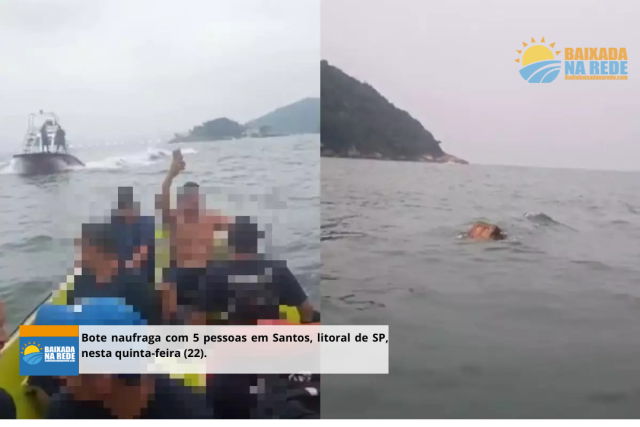 Uma embarcação naufragou perto da Ilha de Palmas, em Santos, litoral de São Paulo, no momento do acidente haviam cinco pessoas no bote, sendo dois tripulantes e três passageiros. Uma embarcação que estava por perto resgatou as vítimas, todas sem ferimentos, que foram transportadas em segurança, onde receberam as atenções necessárias.