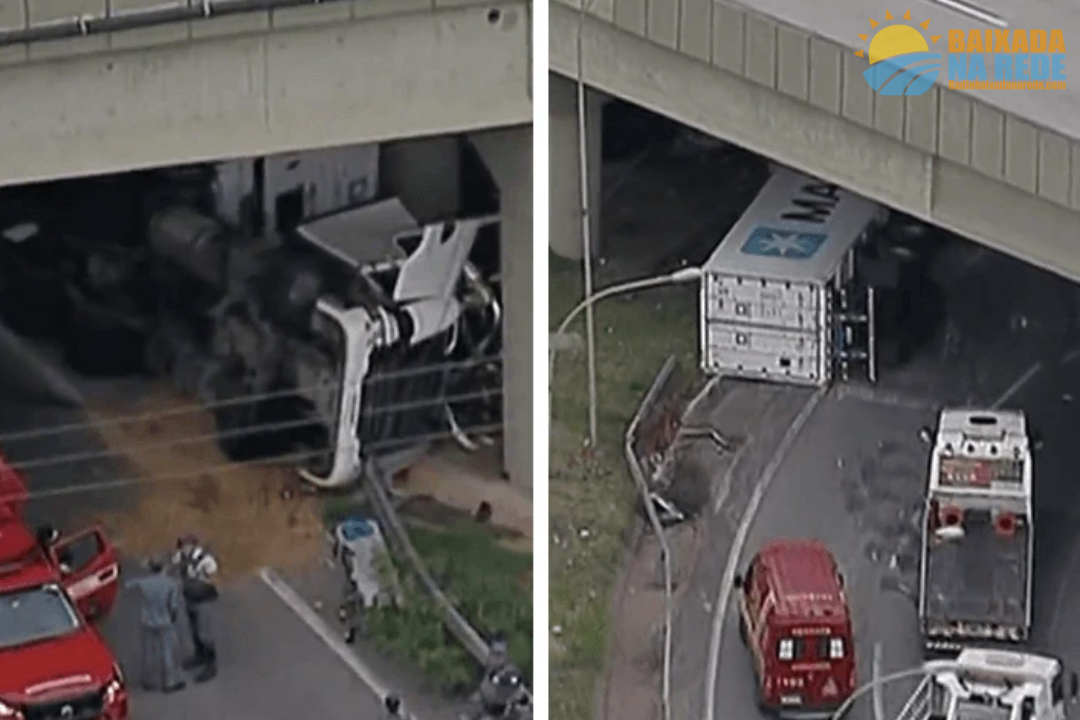 Uma carreta tombou na rodovia Castelo Branco e os bombeiros descobriram que o condutor preso nas ferragens tinha roubado o veículo e sequestrado o dono. A carreta transportava 32 toneladas de alimento. O dono do caminhão não ficou ferido, já o homem que estava na condução está hospitalizado. Outros dois homens que também estavam no veículo conseguiram fugir.