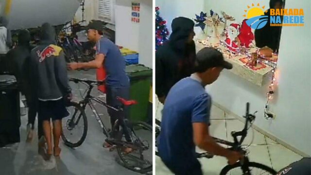 Seis indivíduos foram flagrados por câmeras de monitoramento enquanto invadiam um condomínio no bairro Guilhermina, em Praia Grande, no litoral paulista, e furtavam uma bicicleta da garagem subterrânea. Os moradores do local relataram que este é o terceiro incidente de roubo registrado no edifício, o que gerou grande preocupação e medo entre os residentes ao verem os criminosos circulando pelas dependências do prédio.