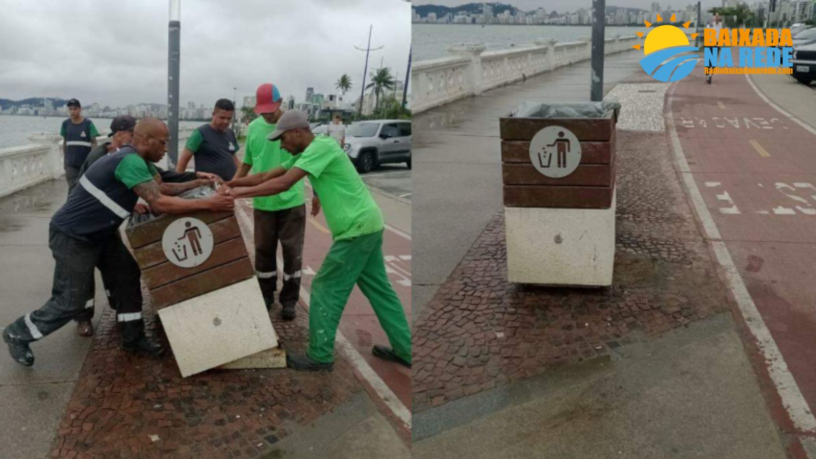 Na manhã de segunda-feira (9), um grupo de homens depredou lixeiras ao longo da orla da Praia da Ponta da Praia, em Santos. Os equipamentos foram derrubados e deixados no chão, causando transtornos. Em razão do vandalismo, foi necessário acionar uma equipe técnica da Secretaria das Prefeituras Regionais de Santos para realizar a limpeza e reparar os danos.