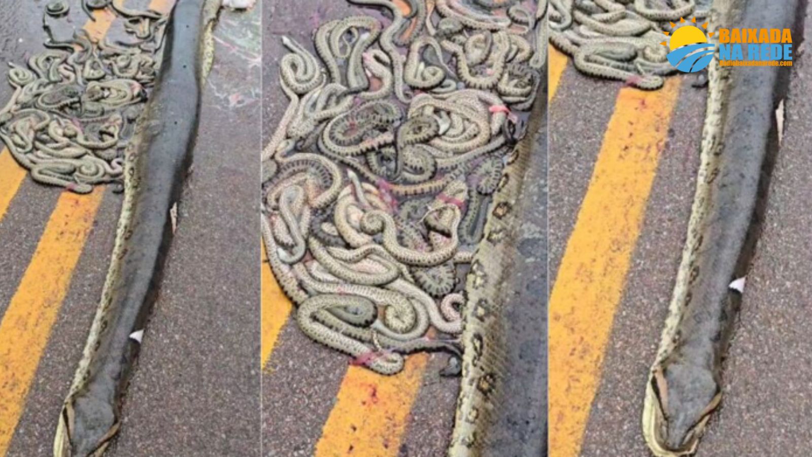 Uma sucuri-verde grávida foi atropelada na MT-338, em Porto dos Gaúchos (MT), na segunda-feira (6). Teve cerca de 40 filhotes expelidos pela força do impacto. Segundo o professor Alessandro Santana Reis, a expulsão dos filhotes não é um mecanismo de defesa, mas uma consequência do atropelamento. A sucuri-verde, que pode gerar grandes ninhadas e é vulnerável a atropelamentos, pois busca o calor das rodovias asfaltadas para regular sua temperatura. O incidente destaca o risco crescente para a fauna devido à expansão urbana e rural.