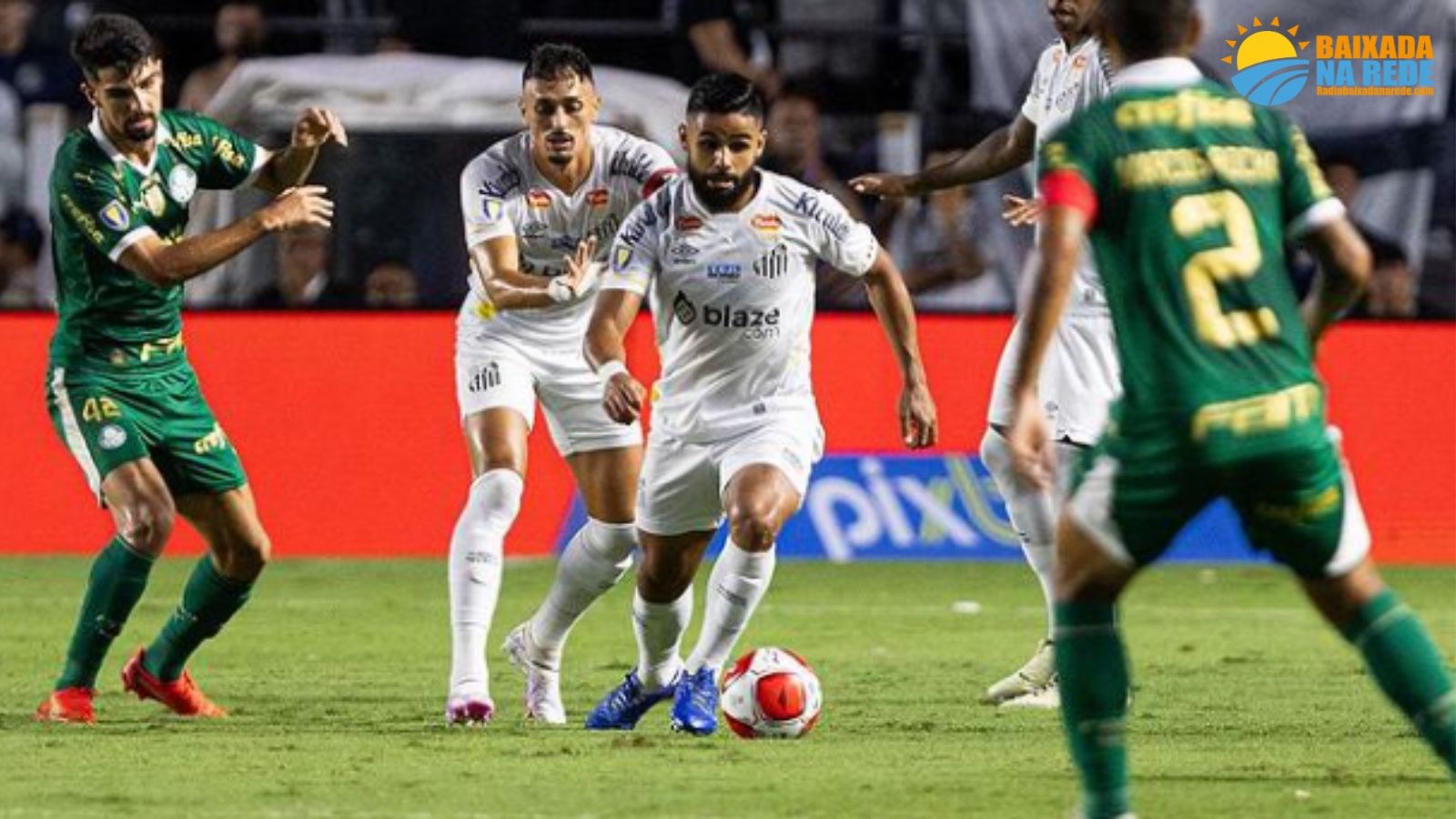 O Palmeiras virou para cima do Santos e venceu por 2 a 1 na Vila Belmiro, na noite de quarta-feira (22), pela terceira rodada do Campeonato Paulista. O Santos abriu o placar com um gol de Guilherme, que teve sorte em uma falta desviada em Thalys, enganando o goleiro Weverton. O atacante, por sua vez, fez uma comemoração dedicada a Neymar. No segundo tempo, Richard Ríos brilhou, marcando um gol de fora da área nos acréscimos e garantindo a vitória palmeirense. Com o resultado, o Palmeiras chegou a sete pontos e assumiu a liderança provisória do grupo D, enquanto o Santos, com quatro, ocupa a segunda posição do grupo B. As duas equipes voltam a campo no sábado (25) para a quarta rodada do Paulistão.