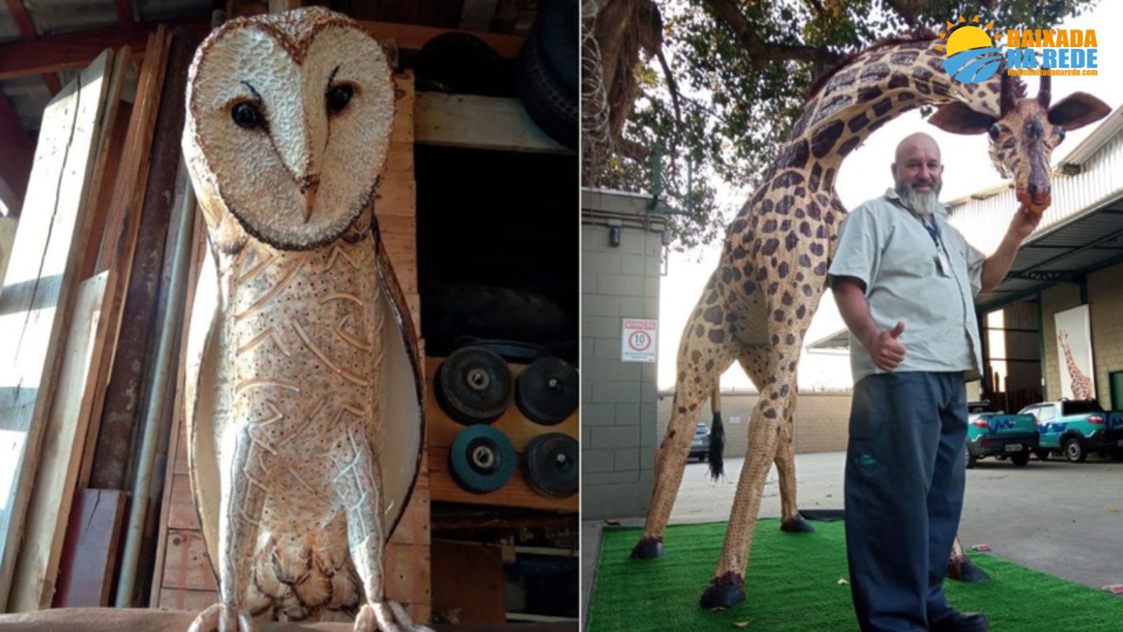 Em Iguape (SP), o casal Débora Zamboni e Rodrigo transformou pneus descartados em esculturas de animais em tamanho real. Débora, com experiência em artesanato, e Rodrigo, perfurador de poços artesianos, começaram a criar as obras após Débora ver uma arara de pneu no YouTube e sugerir que Rodrigo tentasse fazer algo semelhante. O casal começou a coletar pneus de borracharias e bicicletarias locais e, antes da pandemia, Rodrigo se aventurou a criar animais como uma girafa de 2,90 metros de altura.