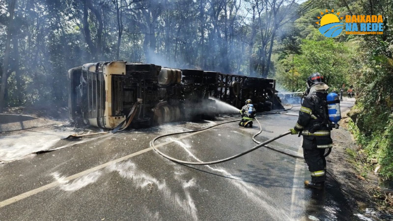 Na manhã de quinta-feira (6), uma carreta carregada de algodão tombou no km 54 da Rodovia Anchieta, em Cubatão (SP). Parte da carga pegou fogo, enquanto o restante caiu na pista. O motorista, que sofreu ferimentos leves, relatou à Polícia Militar Rodoviária que, ao perceber fumaça saindo da carga, perdeu o controle do veículo ao olhar pelo retrovisor e tombou entre as faixas 1 e 2. Seis fardos de algodão caíram na pista oeste, no km 270. A alça de acesso foi bloqueada, mas o tráfego não teve lentidão. O motorista foi encaminhado ao pronto-socorro e não apresentou álcool no teste do etilômetro.