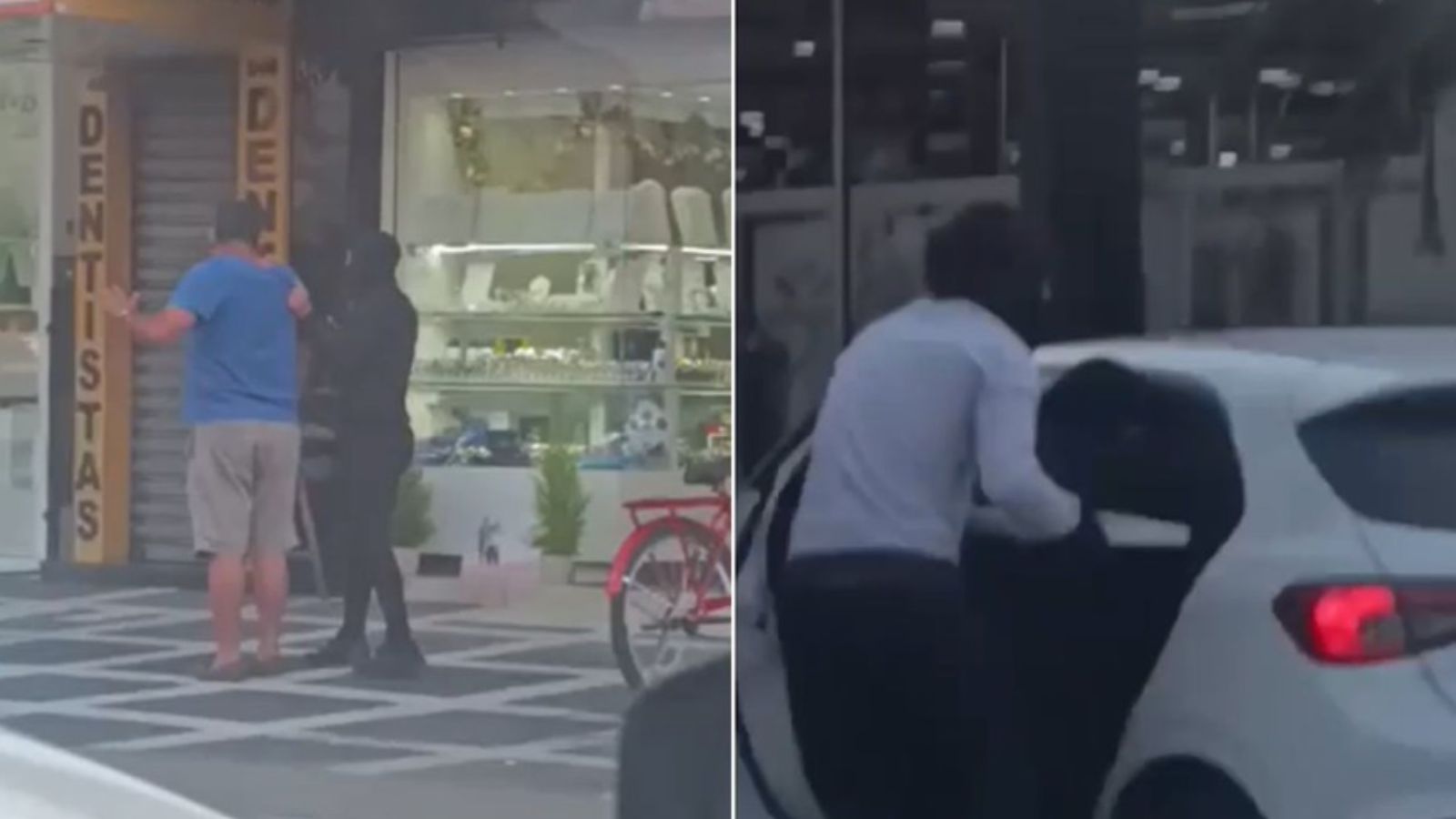 Os criminosos estavam encapuzados e com uma arma apontada para a cabeça de um homem de azul, cuja identidade e função na loja não foram reveladas. O criminoso aguardava a chegada de pelo menos dois comparsas que, enquanto ele vigiava a porta, enchiam sacolas com joias dentro do estabelecimento, localizado na Avenida Thiago Ferreira.