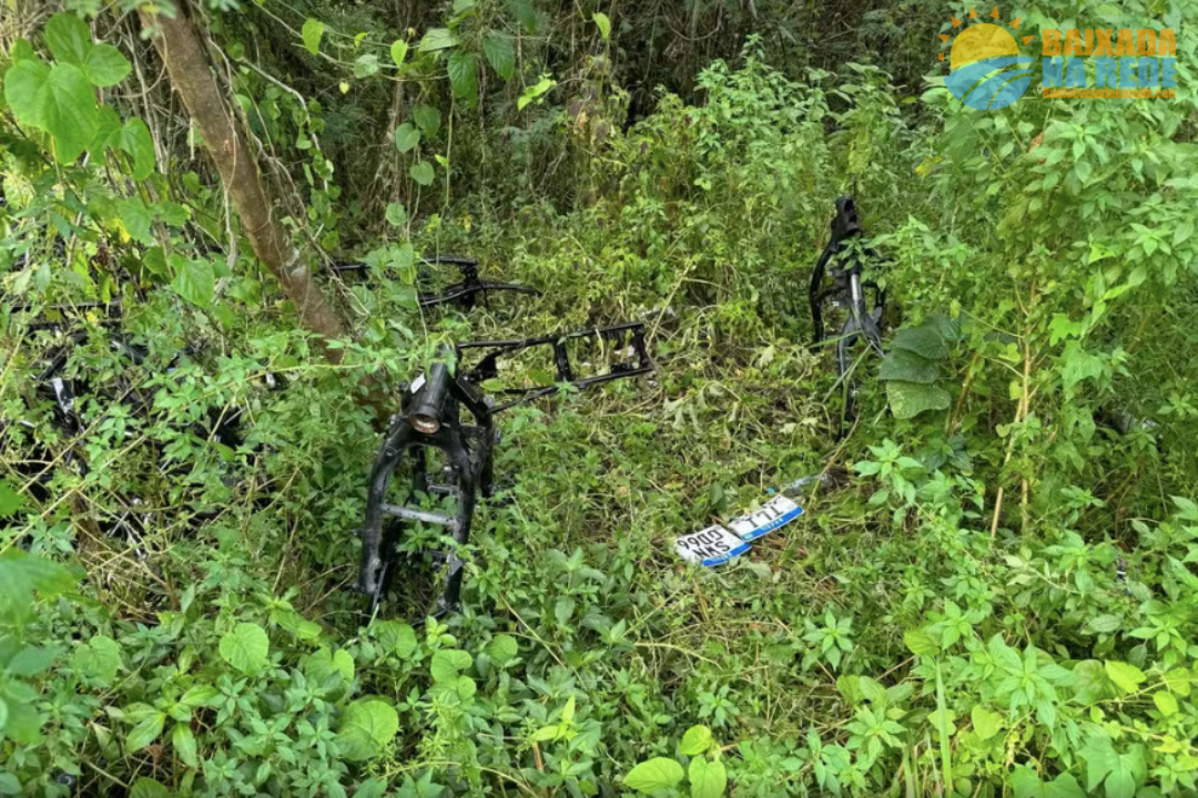 43 quadros de motocicletas roubadas foram apreendidas em um ponto de drogas em São Vicente, no litoral de SP. Segundo a polícia, a apreensão aconteceu em uma área de mata, no bairro Tancredo Neves, o local é conhecido como ponto de drogas e bandidos costumam fazer barricadas para impedir a chegada das viaturas.