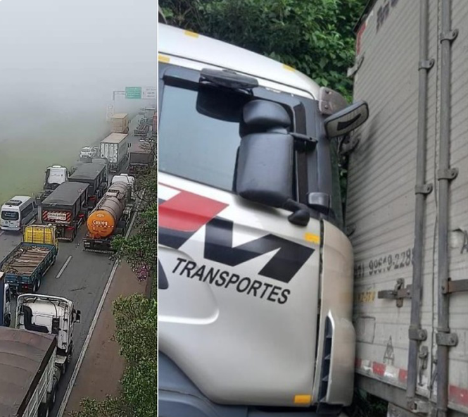 A fila de veículos chega até o km 34, e há lentidão também na Interligação Planalto, do km 3 ao km 1. Segundo a Polícia Militar Rodoviária, a colisão envolveu uma carreta e um caminhão, mas ninguém se feriu. A carreta está travada em um barranco, dificultando a remoção. A Agência de Transporte do Estado de São Paulo (Artesp) orienta os motoristas a utilizarem a Rodovia dos Imigrantes. A Ecovias informou que o Sistema Anchieta Imigrantes estava em Operação Descida 7X3, com rotas alternativas para o tráfego.