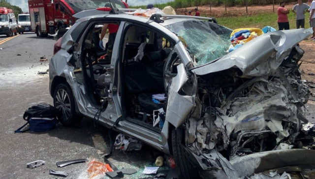 Um acidente na Rodovia Armando de Salles Oliveira (SP-322) em Monte Azul Paulista (SP) deixou uma pessoa morta e cinco feridas, três em estado grave, neste domingo (23). A colisão frontal entre dois carros ocorreu no km 423 por volta das 12h. Ainda não se sabe a causa do acidente, mas a sinalização no local proíbe ultrapassagens nos dois sentidos da pista. Os veículos ficaram destruídos e pessoas tentando ajudar as vítimas presas nas ferragens. Equipes do Corpo de Bombeiros de Bebedouro e Olímpia foram acionadas para o resgate. A pista foi interditada, causando congestionamento de 1,5 km devido à operação “siga e pare”.