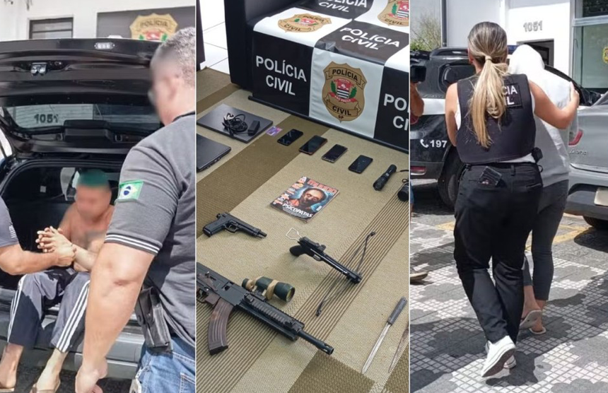 A Polícia Civil apreendeu armamentos e uma revista sobre psicopatas com um casal preso após manterem uma criança e dois adolescentes em cárcere privado e com alimentação insuficiente por mais de dois anos em Registro, SP. Os suspeitos, o pai de 37 anos e a madrasta de 20, devolveram os filhos para a avó após a denúncia e a visita de conselheiros tutelares e policiais.