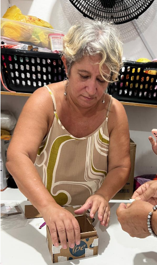 Meu nome é Marta, faço parte das aulas de Cartonagem Criativa, e tem sido uma experiência incrível. Aprender e compartilhar novas técnicas que não só me ajudam a criar objetos úteis e decorativos, mas também desenvolvem minha criatividade no dia a dia, permitindo-me aplicar essas habilidades em diversas situações. “Agradeço imensamente ao vereador Jhony Sasaki por idealizar esse projeto que proporciona aprendizado e crescimento para todos nós”. ressalta Marta;.