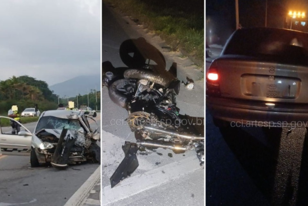 Um motociclista de 30 anos morreu em uma colisão frontal com um carro na Rodovia Manoel Hipólito do Rego (Rio-Santos), em Bertioga (SP), na madrugada de domingo (30). De acordo com a Artesp, o motociclista invadiu a pista contrária durante uma ultrapassagem e bateu de frente com o carro, que teve a dianteira destruída. O motorista do carro, de 32 anos, e a passageira, de 28, foram socorridos; o motorista recebeu alta após atendimento no Hospital Municipal de Bertioga. A rodovia foi parcialmente interditada, e o caso foi registrado como homicídio culposo e lesão corporal na Delegacia de Bertioga.