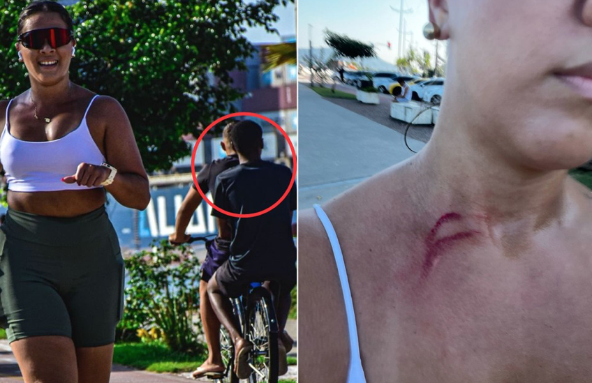 Uma corretora de seguros, de 31 anos, foi vítima de assalto na orla da praia de Santos, no último sábado (29), quando teve sua corrente arrancada por criminosos. Tamyris Nascimento, que treinava sozinha na ciclovia da Avenida Rei Pelé, foi surpreendida pelo roubo e ficou com ferimentos no pescoço. Após o incidente, ela foi socorrida por um tenente que ligou para a polícia e passou as características dos bandidos. Tamyris pediu mais policiamento nas praias, especialmente para mulheres que treinam sozinhas. A Prefeitura de Santos informou que a GCM não foi acionada, destacando que a segurança pública é responsabilidade das autoridades policiais.