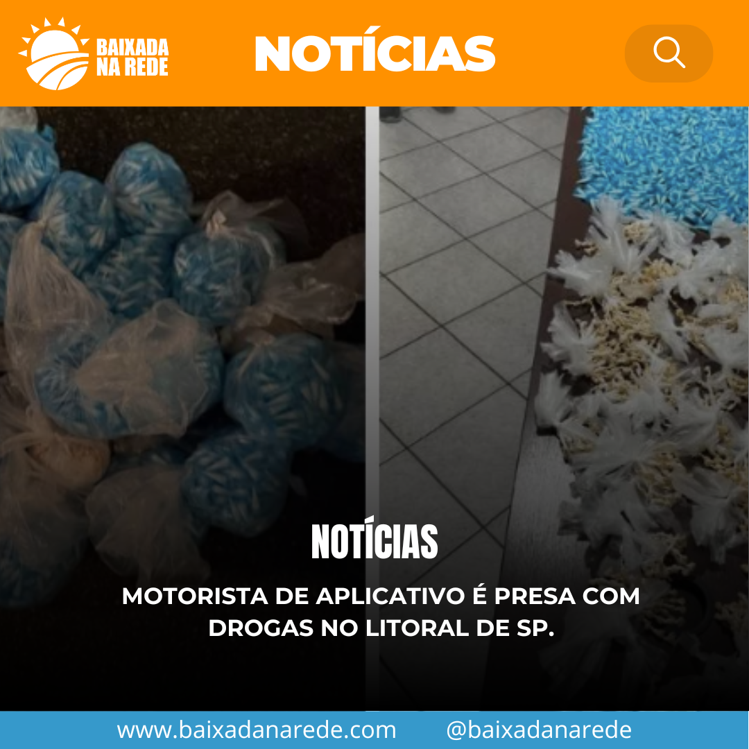 Uma motorista de aplicativo, de 28 anos, foi presa com 3,4kg de drogas, em Mongaguá. A Polícia Civil investigava uma operação de distribuição de entorpecentes nas cidades do litoral sul da Baixada Santista. Uma parte das investigações era a respeito de um veículo que saía de Praia Grande com grandes quantidades de drogas para serem distribuídas em Mongaguá e Peruíbe.