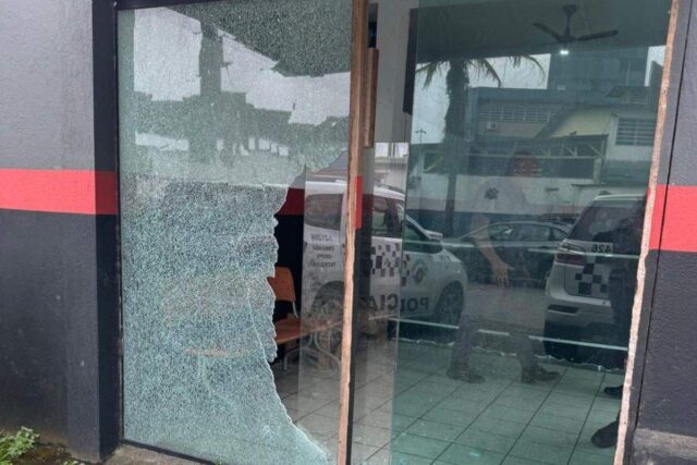 Criminosos em uma moto atiraram contra uma base da PM em São Vicente, na madrugada de sábado (19). O ataque aconteceu na Cidade Náutica, e imagens mostram o garupa atirando com a moto em movimento. Três viaturas foram atingidas, o vidro da base quebrou, e pelo menos seis tiros acertaram a mureta. Ninguém ficou ferido. A mesma base já tinha sido atacada há três anos.