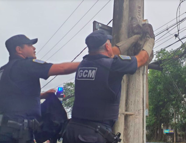 Um bicho-preguiça foi resgatado em um poste de luz em São Vicente, no litoral de SP. Moradores do bairro Itararé, acionaram o Centro de Controle Operacional (CCO) da Guarda Civil Municipal (GCM) após flagrarem o animal no poste de luz. O animal foi resgatado sem lesões e encaminhado para o Horto Municipal, onde passou por avaliação veterinária, após a checagem foi devolvido ao habitat natural, em uma área de mata do morro do Voturuá.