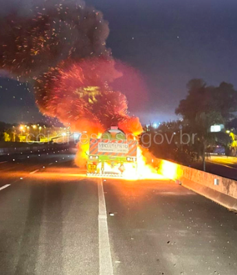 Uma carreta-tanque carregado com ácido sulfúrico, pegou fogo na madrugada desta quinta-feira (15), na Rodovia Padre Manoel da Nóbrega, próximo ao bairro Humaitá, em São Vicente. O motorista percebeu algo de errado no caminhão e parou no acostamento para verificar, localizando o princípio de incêndio nas rodagens. As equipes de emergência do Corpo de Bombeiros (CB) foram acionadas e rapidamente se deslocaram ao local. A carreta ficou parcialmente destruída pelas chamas, não houve vazamento da carga e o motorista saiu ileso.