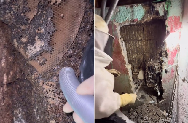 Uma colmeia de abelhas africanizadas (Apis mellifera) foi retirada de dentro do muro de uma casa em Guarujá, no litoral de São Paulo. Segundo o Grupamento de Defesa Ambiental (GDA), moradores relataram que o enxame estava atacando os vizinhos.