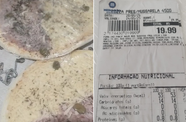 A compra foi feita na última terça-feira (20), no Mercadão Atacadista da Avenida Monteiro Lobato, no bairro Vila Atlântica. As pizzas faziam parte de uma compra mensal no valor de R$ 500. A mulher contou que decidiu levar os alimentos prontos para agradar o neto, diagnosticado com Transtorno do Espectro Autista (TEA), que estava com vontade de comer pizza. No entanto, ao prepararem a refeição, perceberam que os produtos estavam impróprios para o consumo.