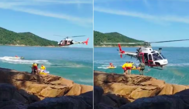 Um homem, de 37 anos, foi salvo após cair de pedras, enquanto pescava em Guarujá, no litoral de SP. Os guarda-vidas prestaram os primeiros atendimentos e estabilizaram a vítima até a chegada do Grupamento de Bombeiros Marítimo (GBMar), o homem foi retirado da área e colocado dentro do helicóptero Águia da PM e encaminhado para uma Unidade de Pronto Atendimento (UPA) para uma avaliação médica.