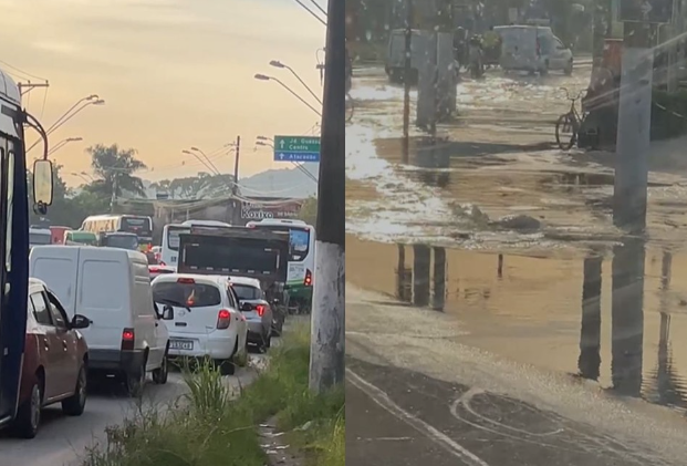Um cano da Sabesp estourou na manhã desta terça-feira (27) e provocou um grande vazamento de água em São Vicente, no litoral de São Paulo. O incidente ocorreu por volta das 5h, na Avenida Penedo, sentido Centro, nas proximidades do McDonald’s e do Atacadão. O vazamento causou alagamentos e transtornos no trânsito da região. O auxiliar administrativo Rubens Pupo relatou ter presenciado a situação enquanto se deslocava para o trabalho em Santos, por volta das 7h50.