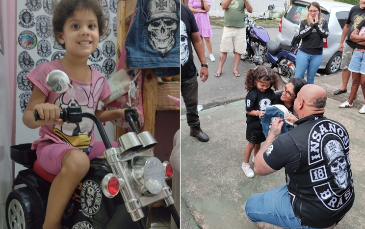 Caveiras, roncos de moto e roupas pretas podem não parecer coisas de criança, mas conquistaram o coração da pequena Aurora Peres França Pellecchia, de Praia Grande (SP). Aos três anos, ela encontrou no Insanos Moto Clube (IMC) carinho, proteção e centenas de amigos. Hoje, é a mascote do grupo e coleciona adesivos do clube como símbolos de segurança, que a ajudaram até a superar o medo de dormir sozinha.