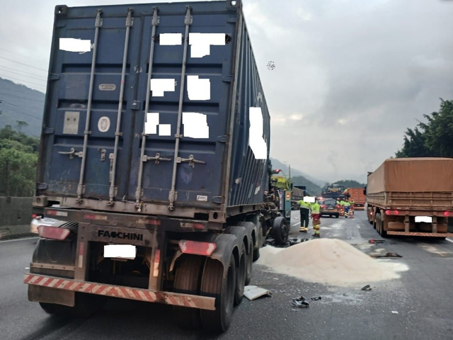 Ambos os veículos transportavam açúcar, e cerca de 300 kg da carga caíram na pista. Apesar do impacto, os motoristas saíram ilesos. As faixas 2 e 3 foram interditadas por mais de 30 minutos, gerando lentidão do km 268 ao km 264.