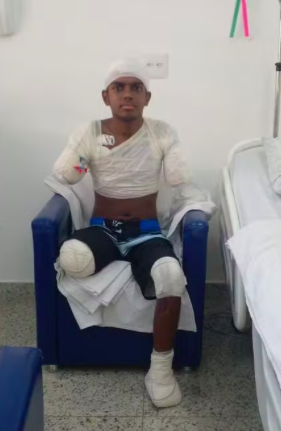 Rafael de Freiras Ferreira, de 17 anos, teve os dois braços, a perna direita e parte do pé esquerdo amputados após encostar uma barra de ferro no fio de alta tensão de um poste. O acidente aconteceu ano passado, enquanto ajudava o pai a desentupir um cano. Ele ficou internado por quase quatro meses na Santa Casa de Santos, onde sofreu as amputações. Rafael faz acompanhamento em Santos com fisioterapia, terapia ocupacional, nutricionista, psicólogo, entre outros profissionais. Segundo Francisca, a mãe, Rafael deve tirar as medidas para fazer o molde da prótese da perna direita nos próximos dias, ele recebeu uma bota adaptada para a metade do pé esquerdo, que também foi amputada. As próteses dos braços são as únicas que ainda não estão certas, estão estudando uma que ele consiga ter mais movimento explicou a mãe, que não vê a hora de Rafael ter todas as próteses necessárias.