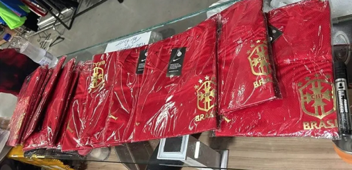 A Polícia Civil de São Paulo apreendeu, nesta terça-feira (3), um carregamento de camisetas vermelhas falsificadas da Seleção Brasileira de Futebol. A operação ocorreu em seis lojas da “feirinha da madrugada”, no Brás, zona leste da capital. Segundo a polícia, os responsáveis pela falsificação se anteciparam à polêmica envolvendo rumores sobre um possível novo uniforme vermelho da Seleção, que foge das cores tradicionais. As peças apreendidas traziam também a logomarca da Jordan, em suposta colaboração com a Nike, fornecedora oficial do material esportivo.