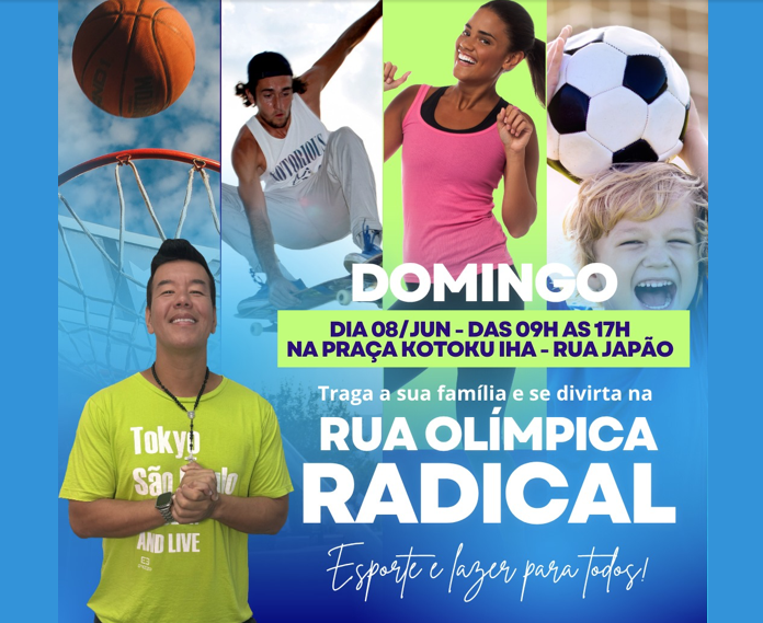 Um dia cheio de esporte, diversão e adrenalina na Rua Olímpica Radical, que acontecerá no dia 8 de junho (domingo), a partir das 9h da manhã, na Rua Japão, na Praça Kotoku Iha em São Vicente litoral paulista.