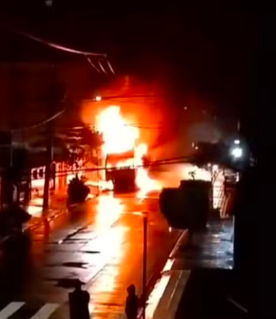 Caminhão estacionado, pegou fogo nesta madrugada de terça-feira (24), em Praia Grande, no litoral de SP. O fogo destruiu a cabine do veículo e atingiu parte da rede elétrica, próximo ao caminhão. De acordo com o Corpo de Bombeiros, o incêndio foi controlado e ninguém ficou ferido. O motivo do incêndio está sendo investigado.