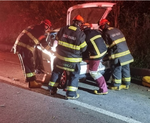 Uma colisão frontal entre dois veículos na Rodovia Rio-Santos, na altura da praia de Itamambuca, em Ubatuba, na noite de terça-feira (15/7), deixou três pessoas feridas. O acidente ocorreu por volta de 18h45. Um homem de 39 anos e uma criança de 4 anos sofreram ferimentos leves e foram socorridos pelo Samu. Já um homem de 32 anos ficou preso às ferragens e foi resgatado pelo Corpo de Bombeiros com suspeita de fratura na perna esquerda. Ele foi encaminhado à Santa Casa de Ubatuba pela equipe de resgate da CCR.