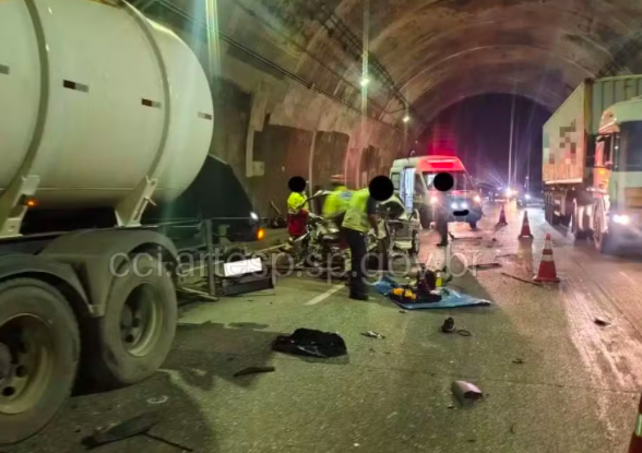 Acidente envolvendo dois carros, um ônibus e uma carreta deixou cinco pessoas feridas na Rodovia dos Imigrantes, na altura de São Vicente, no litoral de SP. De acordo com a Polícia Militar Rodoviária (PMR), a colisão aconteceu quando um carro tentou fazer uma ultrapassagem, mas bateu na lateral do ônibus, o coletivo bateu contra a traseira de uma carreta e atingiu um outro carro. As vítimas foram socorridas e encaminhadas ao Hospital Modelo de Cubatão (SP).