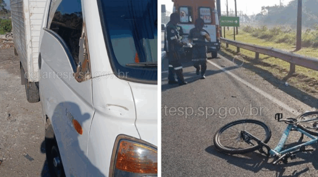 Ciclista morre após ser atropelado por uma carreta na Rodovia Padre Manoel da Nóbrega, em São Vicente, no litoral de SP. O acidente ocorreu no km 286, na altura do Parque das Bandeiras.