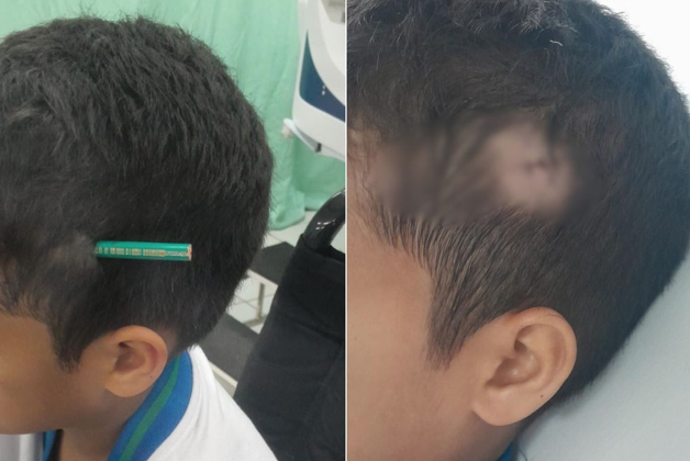 Kaue Martins Nascimento, de 9 anos, teve um lápis cravado na cabeça por um colega de classe em Praia Grande, no litoral de SP. O caso aconteceu na escola municipal Mahatma Gandhi, no bairro Jardim Melvi. Karoline, mãe do menino, contou que Kaue já havia relatado desentendimentos com o colega agressor, também 9 anos. Seu filho estava desenhando quando o colega começou a rasgar sua folha, ele tentou afastar o colega com o braço, e, sem querer, o lápis encostou no menino. O colega teria ficado bravo, o agrediu e cravou um lápis em sua cabeça.