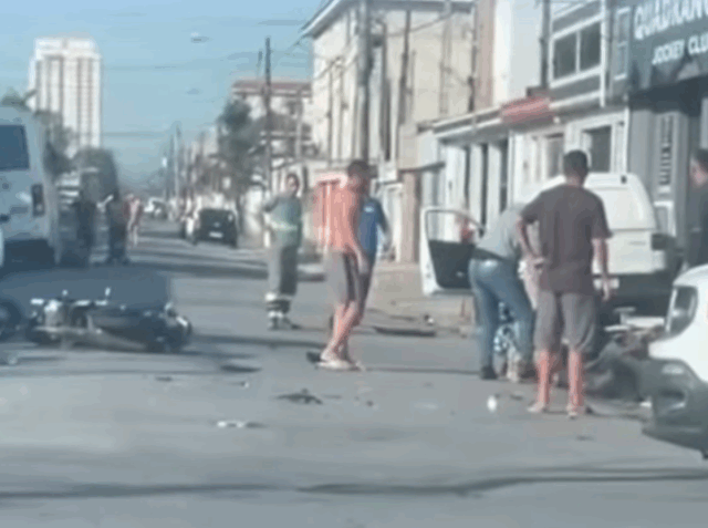 Um motociclista de aplicativo e sua passageira ficaram feridos após uma colisão com um carro, no bairro Jóquei Clube, em São Vicente (SP). O acidente ocorreu no cruzamento das ruas Fernando Ferrari e Carijós, onde, segundo o motociclista, não há sinalização de trânsito, o que teria contribuído para a batida.
