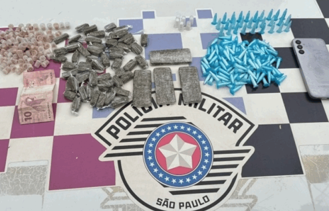A equipe que fazia o patrulhamento da atividade delegada pela Alameda Paranapiacaba, no bairro Boraceia, visualizou dois indivíduos, sendo que um deles conseguiu fugir. Após breve varredura, os policiais localizaram a sacola contendo 103 porções de crack, 110 porções de maconha, 141 porções de cocaína, um celular Samsung e a quantia de R$10.