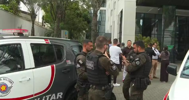 Os criminosos usaram distintivos falsos e se passaram por delegados para entrar no edifício. Imagens de segurança mostram três deles chegando por volta das 7h30 e subindo ao 21º andar, onde invadiram uma empresa de engenharia e mantiveram 15 funcionários reféns por cerca de duas horas.