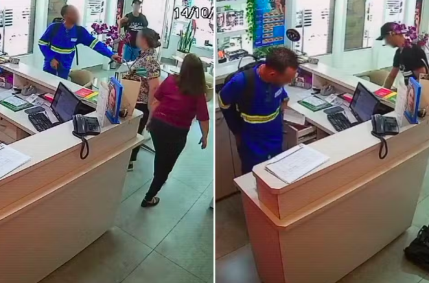 Dois homens foram filmados roubando uma ótica, em Santos, no litoral de SP. Segundo a Polícia Militar, os suspeitos fugiram com R$ 237,00 em espécie, diversos óculos e uma aliança. Câmeras de monitoramento flagraram a ação criminosa, no estabelecimento localizado entre a Avenida Ana Costa e a Praça da Independência, no bairro Gonzaga. Uma funcionária relatou à polícia que um dos suspeitos esteve no comércio um dia antes. De acordo com a Secretaria de Segurança Pública de São Paulo (SSP-SP), um dos suspeitos estava armado.
