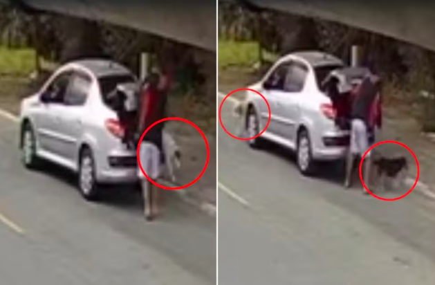 Um homem foi flagrado por câmeras de segurança abandonando dois cachorros, no bairro Nova Mirim, em Praia Grande (SP). Imagens, mostram o momento em que ele abre o porta-malas do carro e deixa os animais saírem.