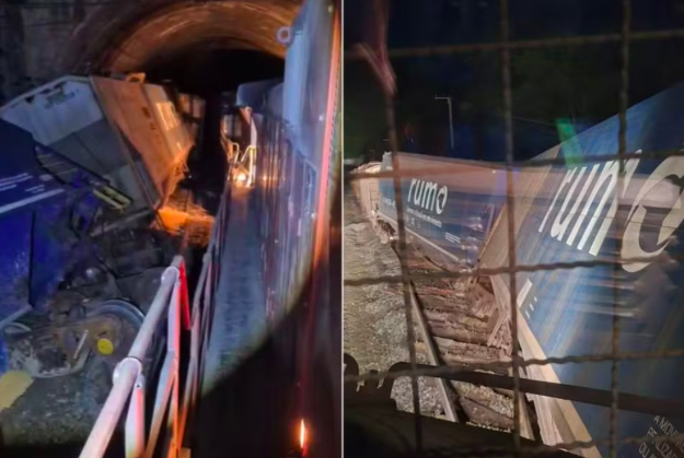Um trem carregado com milho descarrilou parcialmente na noite de terça-feira (11) dentro de um túnel em São Vicente, no litoral de SP. De acordo com a concessionária Rumo, responsável pela operação, ninguém ficou ferido. O incidente ocorreu em um trecho de via dupla na serra, o que levou à interrupção preventiva da circulação no sentido oposto. Equipes técnicas foram acionadas para remover os vagões e limpar a via, já que parte da carga se espalhou pelo local. A circulação dos trens já foi restabelecida, e as causas do descarrilamento ainda serão investigadas.