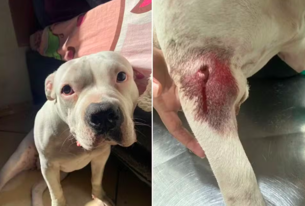 Uma cadela da raça American Bully chamada Atena foi baleada por um guarda civil municipal no bairro Vale Verde, em Cubatão (SP). O animal foi atingido na pata dianteira, está estável e segue internado para cirurgia.