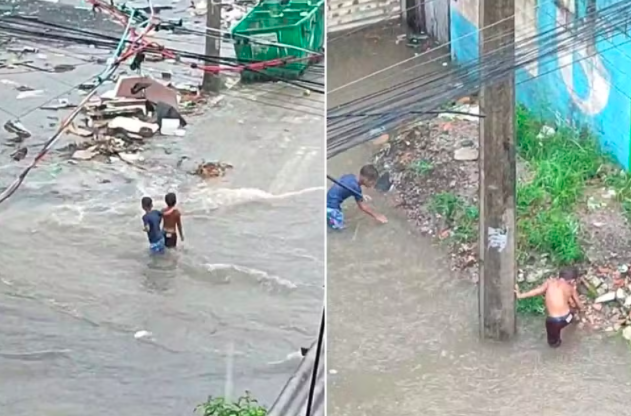Início Notícias Meninos quase são atingidos por caminhão durante enchente em Guarujá.