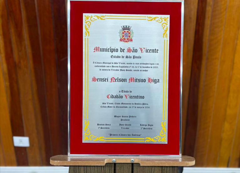 Mais do que uma honraria, o reconhecimento traduz o respeito a uma vida dedicada à formação humana. Com sensibilidade e respeito às tradições, o vereador soube reconhecer no Sensei Nelson Higa não apenas um mestre, mas um verdadeiro construtor de valores.